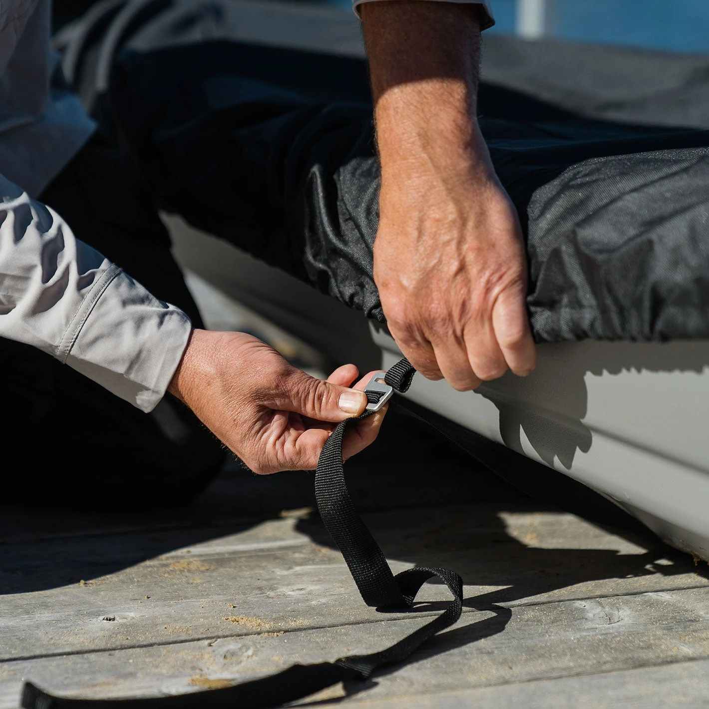 Kayakers can keep their boat protected from the elements with the Catch kayak cover. Designed to wrap around your boat easily, it provides complete protection thanks to a system of straps and hooks that can be used to find perfect adjustment. Made of heavy-duty waterproof material, this kayak cover will keep your watercraft in top condition between trips.,