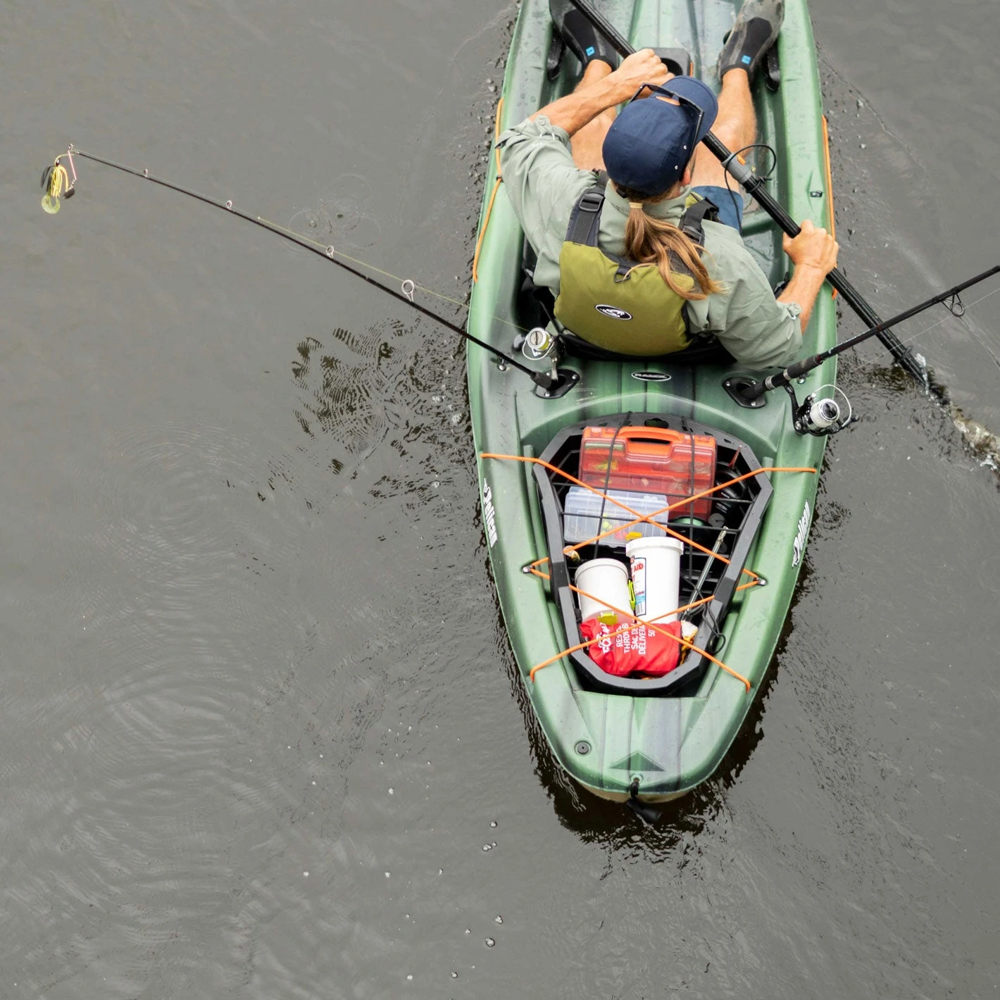 The SENTINEL 100X ANGLER fishing kayak has an open cockpit, ideal for bringing all of your essential equipment onboard while being able to stand up safely. At 9.6 feet long and weighing 44 lb, this sit-on-top kayak is specially designed for experienced anglers who want to reach narrower spots for rich fishing grounds. In addition to the usual components, this sit-on-top kayak is equipped with practical accessories dedicated to fishing such as a center console with compartments molded into the cover, two clips for paddles or fishing rods, two accessory eyelets, and two recessed rod holders. Explore the most remote fishing spots aboard this wonderfully designed fishing kayak.