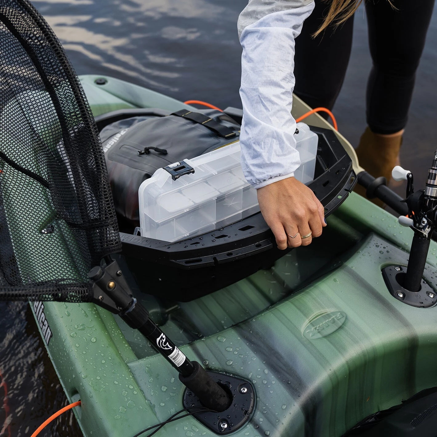 The ExoPak is a removable storage compartment that fits perfectly into the tank well of most of our recreational kayaks. This allows you to pack your gear at home before your trip and simply drop it into the kayak when you arrive waterside. The ExoPak comes equipped with two vertical rod holders and includes multiple sections and additional bungee cords.,